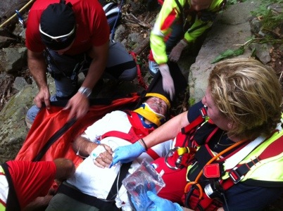 Ti svegli che stai sognando qualcosa di piacevole e sereno richiamato da tua moglie che grida angosciata il tuo nome. Ti guardi intorno e sei steso sopra un albero. Sì, sono qui, che è successo? Sei scivolato nel burrone e non ti vedo, dove sei? Sono qua, sto bene. Ma la tua voce non è potente, è mozzata dal fiato che ti manca. Stai tranquillo, ho già chiamato il 118. Ti guardi intorno e non riconosci il luogo ma ricordi che eri alla fine di una passeggiata nel bosco. Capisci che è successo qualcosa di molto grave ma che sei in vita. Ringrazi il Padre di tutti che con la sua mano potente ti ha difeso dalla morte e che ti ha regalato ancora dei giorni di vita. Reciti il Padrenostro scandendo le parole e poi ti commuovi fino alle lacrime pensando a Lucilla esposta a questa nuova prova durissima. Senti la sua voce accorata che continua a gridare il tuo nome. Ti riprendi meglio e torni alla tua consueta e apprezzata razionalità. Sotto il ceppo di faggi su cui sei finito ci sono ancora tre a quattro metri di vuoto e poi i pietroni di un ruscello di montagna . Il ceppo sopravvive isolato e abbarbicato su una parete abbastanza ripida di scisti umide e scure. Bisogna mettersi in sicurezza, ti arrampichi sulla pianta e riesci a metterti a cavalcioni del ceppo seduto su una pietra. Pensi. Speriamo che con il mio dolce peso non ceda. Quelli del 118 hanno capito dove siamo ma devono organizzare una squadra di salvataggio alpino. Bisogna aspettare un po’ . Come stai? Bene stai tranquilla. Sei tutto dolente ma riesci a muovere le gambe, a far forza, le braccia rispondono. Senti caldo sul collo, ti tocchi e scopri che è del sangue che scende da una ferita sulla nuca. Raimondo sii paziente, resisti, bisogna aspettare un po’ . Abbracci il faggio, appoggi la fronte a un tronco e ti rilassi. Pochi attimi o vari minuti o una mezzoretta non sai, ma quanto basta per ricordare che sei nei boschi della linea gotica, qui sono stati trucidati dei giovani partigiani. Pensi a loro quando vedi arrivare appesi alle corde quelli del soccorso alpino, per un attimo li scambi per partigiani quando vedi il passo sicuro con gli scarponi di Vibram. Pensi a un gruppo di partigiani quando vedi il loro affiatamento, la gerarchia precisa e rispettata, la figura del comandante che dà ordini con uno sguardo, che ascolta ciascuno senza perdere un secondo prezioso. Il comandante ti chiede spesso il nome, l’età, ti fa parlare per tenerti vigile. Il gruppo è silenzioso e fattivo, ti fa coraggio con gli sguardi. Verrà Pegaso a prenderti, solo un elicottero può tirarti fuori senza fare altri danni. Poco dopo senti in lontananza l’elicottero, inviano di nuovo le coordinate GSM, sono pronti i fumogeni. Due di loro con energia abbattono con delle seghe manuali 5 o 6 alberi per creare un varco per i verricelli. Raimondo, copriti bene la faccia con questo telo, noi ci metteremo sopra di te per protezione, l’aria sollevata dall’elicottero potrà spostare di tutto ed è pericoloso. Primo giro di Pegaso ed è il finimondo, polvere, sassi, rami, foglie che si spostano come in un tornado. Pegaso si riallontana, valutando poco sicura la discesa su quel sito del personale medico. Due del gruppo alpino si allontanano velocemente per prelevare nel punto di discesa l’infermiera e la dottoressa e aiutarle a scendere nel dirupo . Mentre si aspetta, ti chiedi se te lo puoi permettere, se l’operazione avrà un costo. Lo chiedi al comandante. Sei del CAI? No. Nulla, lo svolgiamo in convenzione con la regione Toscana. L’infermiera arriva per prima, é una donna minuta con i capelli corti, sicura e con poche parole inizia il suo lavoro disinfettando il punto in cui inserirà gli aghi per la flebo. Arriva la dottoressa, una signora dai capelli rossi che, se non avesse la divisa, la vedresti meglio in un calmo contesto borghese ad accudire i figli. Ora le decisioni le prende lei, ti controlla, concorda il da farsi con il comandante, ti comunica le operazioni successive. Lei stia fermo facciamo tutto noi. Nel frattempo il gruppo alpino ha realizzato una piattaforma scavata nella parete di scisti allargata con dei tronchi, dei rami, della terra. È perfettamente a livello del punto in cui sei seduto. Corde tese ancorate su rami e rocce fanno sicurezza per le due donne che ti stanno intorno. Le farò della morfina. Devi aver fatto una faccia meravigliata. Tranquillo non dà dipendenza. Inizia lo scivolamento del tuo corpo, che deve rimanere rilassato sopra la barella spinale. Vieni legato con cura e con calma, il clima ora è più disteso, come se l’operazione fosse al suo epilogo. Sei sdraiato e ti senti al sicuro. Trovi il coraggio di fare una cosa cui stavi pensando e, prima, trovavi inopportuna: usare il tuo telefonino per documentare gli eventi. Rivolto al comandante. Sa fare foto con iPhone? Lo trova nella mia tasca dei pantaloni, voglio le foto dei vostri volti perché non vi voglio dimenticare. Verrai a trovarci nella nostra sede. Si, ma voglio portarvi con me. Per cortesia lo dia a mia moglie e se possibile uno della squadra dovrebbe aiutarla a tornare in macchina a S. Marcello. Stai tranquillo ci pensiamo noi. Sei pronto nel bozzolo, una mummia, con in faccia una rete per difenderti dal vortice delle pale. Il comandante dà il via alle operazioni, Pegaso è tornato, un rombo assordante, di nuovo un vortice di polvere, sassi, foglie, rami spezzati. Ora lo vedi bene, è un bestione, come quelli da guerra, come quello del Papa. Non puoi vedere tutto, forse sale l’infermiera prima di te. Si attende. Hai visto troppi film catastrofici per non pensare che basterebbe poco per un disastro immane e che tutti coloro che ti stanno intorno stanno rischiando la loro vita per te. Si parte, un piccolo stratto e la tua barella comincia a salire, oscilla, sfiori i rami e gli alberi intorno, sali e cominci a ruotare quasi vorticosamente, vedi il profilo dei monti ruotare sempre più velocemente, è il disastro temuto? Cosa fai? Invece 