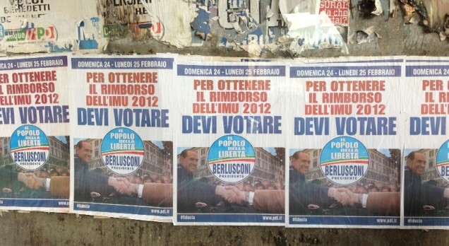 La lingua italiana è una lingua abbastanza precisa. Dal manifesto risulta che Berlusconi si è formalmente impegnato a restituire l’IMU a coloro che lo votavano. Quindi se avete la prova certa che avete dato il voto a lui potete reclamare la somma promessa per quel voto anche se non ha vinto.