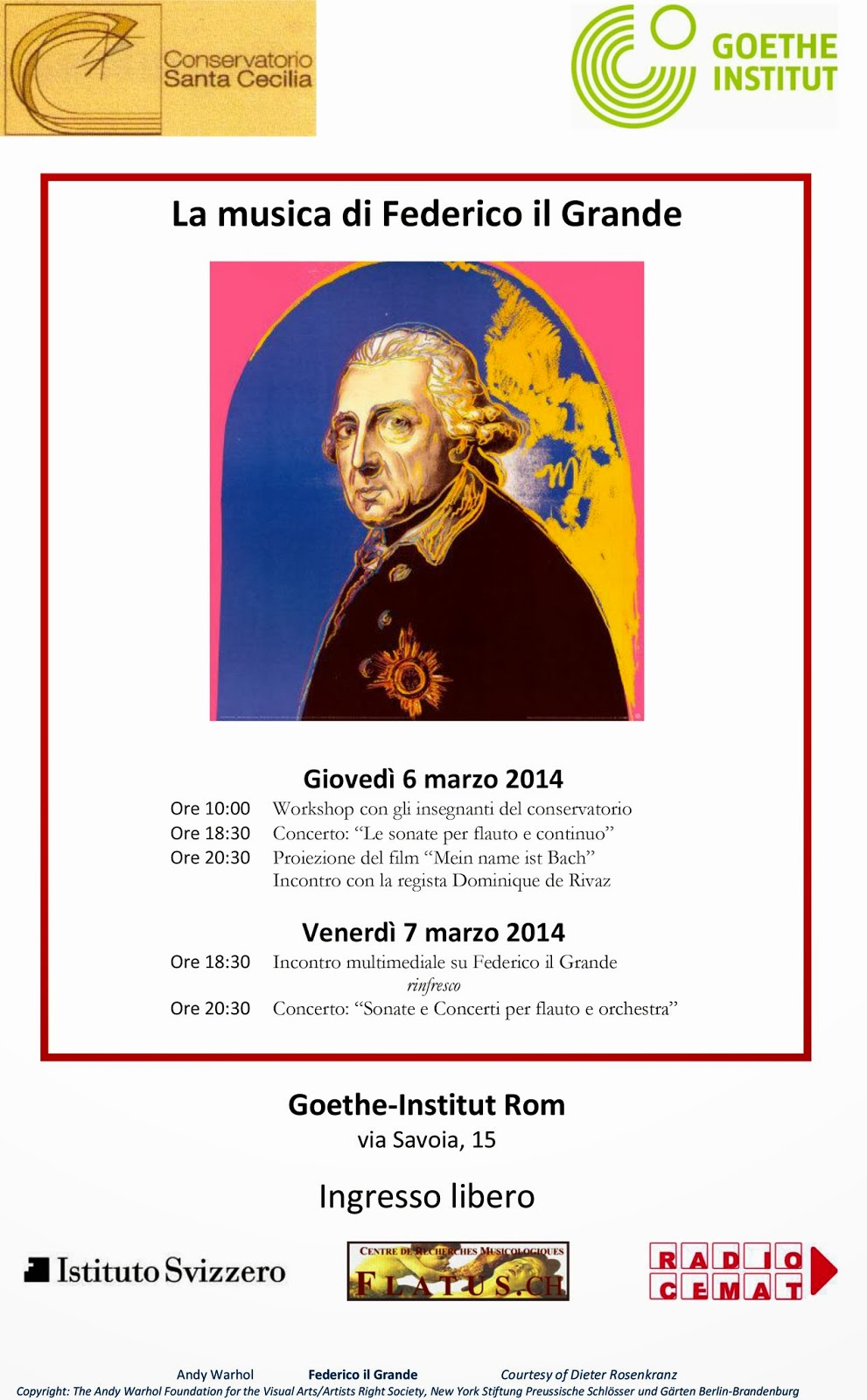 Il primo è stato un evento musicale, un saggio degli studenti del conservatorio di Santa Cecilia presso il Goethe Istitut dedicato a Federico il Grande re di Prussia.