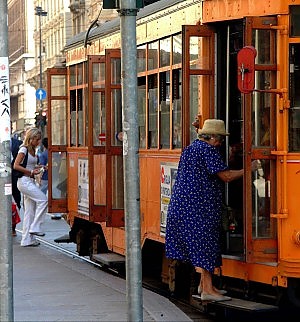 Trovato un posto libero, mi siedo vicino ad una signora piuttosto infagottata ed essendo anch’io voluminoso ci siano assestati e stabilito così anche un contatto verbale. Non si preoccupi, si accomodi pure. Da quel momento in poi non è stata mai zitta, partita con timidi commenti sulla regina, qualche battuta su Renzi, mi è apparsa dapprima come una disadattata con problemi mentali e poi pian piano come una persona del tutto normale, simpatica, con una vita familiare ed affettiva normale, con nipotini, con interessi, con un normale retroterra culturale. Spiritosa quanto basta per alimentare una conversazione che da parte mia era a volte reticente ed imbarazzata. Individuata Lucilla che stava due posti più in là, la tranquillizza dicendo che non aveva nessuna strana intenzione, alla fine, capito che non eravamo pratici del percorso ed incerti sulla fermata a cui scendere si mette e a descrivere il quartiere. Questo è il centro anziani, là si balla, qui c’è un’ottima pizzeria, laggiù la Torresina, ci dovrebbe portare sua moglie, è molto bello, li sulla destra ci sono degli orti di guerra, ci sono tanti anziani che ci lavorano, io non ci vado, ho già lavorato abbastanza, sulla destra il centro per l’impiego, ora siete arrivati dovete scendere. Quasi quasi scendo anch’io.