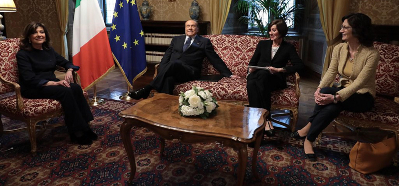Maria Elisabetta Casellati con i capigruppo di Forza Italia Anna Maria Bernini e Mariastella Gelmini e il leader del partito SIlvio Berlusconi, durante le consultazioni di oggi. (ANSA/TWITTER)