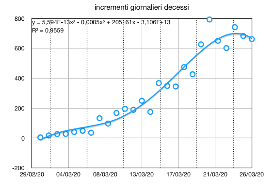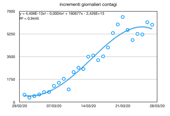 In questa tragica storia dell’epidemia la nostra attenzione è ora centrata sugli incrementi giornalieri nella speranza di osservare una inversione di tendenza.