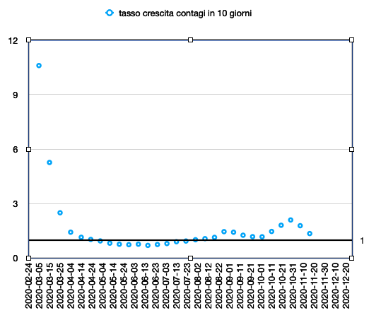Non vado oltre nel mio ragionamento e ricordo solo che il 15 di agosto i positivi accertati in Italia in totale dall’inizio della pandemia erano 253.510 e che i nuovi positivi di quel giorno erano 629, il 22 novembre il totale degli infettati sin dall’inizio sono 1.380.684. Sottraendo i 253.520 infettati prima del ferragosto i nuovi infettati successivi ai 629 infettati di quel giorno si ottiene 1.127.000 contagiati dopo il 15 agosto. Abbiamo così che ogni progenitore0 è il nodo di origine di una catena di infezioni che ha riguardato in media 1.792 (1.127.000 / 629) casi, un po’ meno dei 2.000 da me stimati con il mio modello molto grossolano.
