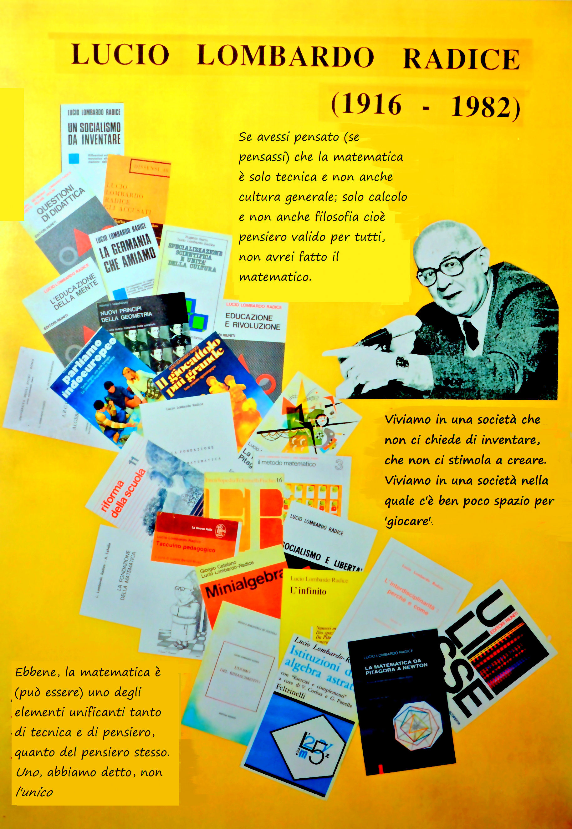 Un maestro non dimenticato Il 21 novembre 1982 Lucio Lombardo Radice ci ha lasciato Condividi: Condividi su Facebook (Si apre in una nuova finestra) Facebook Condividi su LinkedIn (Si apre in una nuova finestra) LinkedIn Altro Condividi su X (Si apre in una nuova finestra) X Invia un link a un amico via e-mail (Si apre in una nuova finestra) E-mail Condividi su WhatsApp (Si apre in una nuova finestra) WhatsApp Mi piace Caricamento...